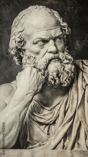 Fototapeta premium Deep in thought, Socrates contemplates profound ideas with intensity
