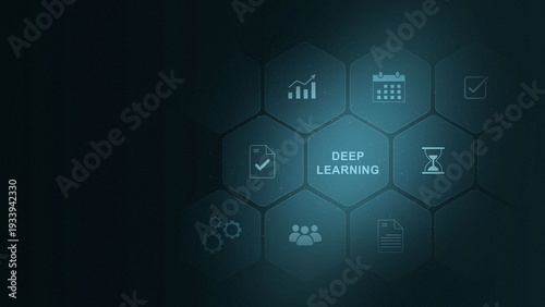 © Masha Stock, Fototapeta premium Deep learning artificial intelligence neural network. Technology, Internet and network concept. digital interface on cyan color background. and 3d illustration