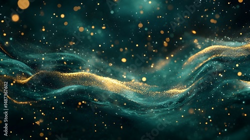 Fototapeta premium Deep malachite green gradient with golden glint and sparkling motion