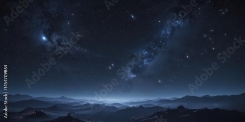 Fototapeta premium Deep midnight blue, myriads of twinkling stars, immense, star-dusted void ,...