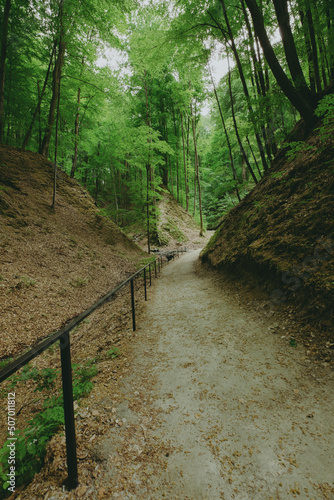© sweethelen, Obraz premium Deep mystical dark forest background with many trees