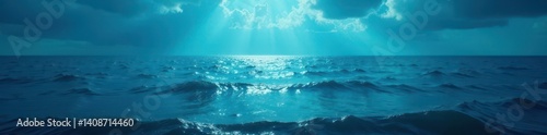 Naklejka premium Deep ocean, hazy blue, subtle light penetration, mystery, ocean depths, penetrating light