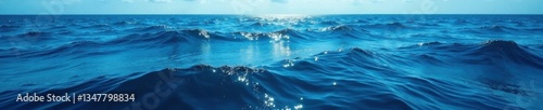 © Phennapha, Fototapeta premium Deep ocean surface with dark blue waves gently rolling in the distance , blue, waves, ocean