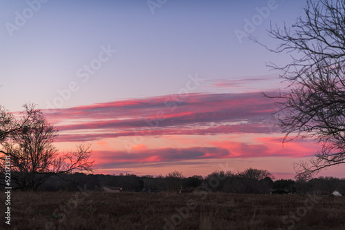 © Bobby, Fototapeta premium deep pink sunset sky over suburban rural landscape in Texas