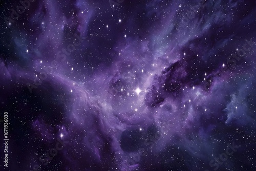 © Wang, Fototapeta premium Deep purple nebula with stars and cosmic dust.
