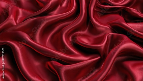 © Hayra, Obraz premium Deep Red Fabric Texture With Draped Folds