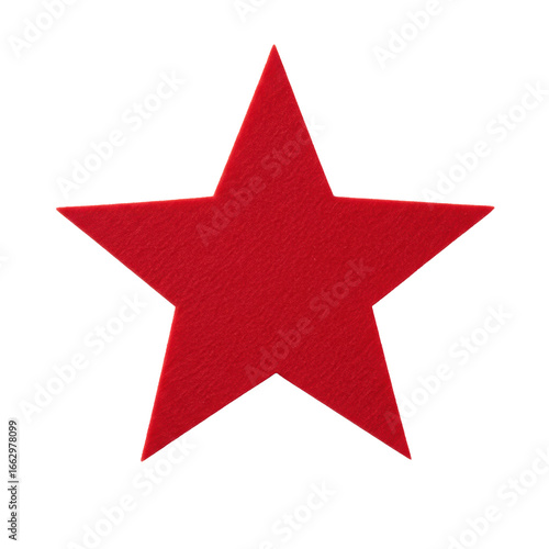 © Jack, Fototapeta premium Deep red felt star, precisely cut with crisp edges and soft texture, centrally placed on a transparent shadowless background, commercial product quality concept