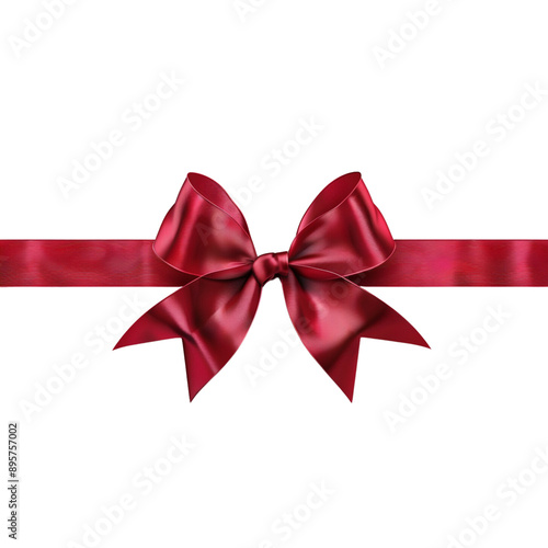 © Stamplovesink, Fototapeta premium Deep red satin ribbon with bow transparent background png.