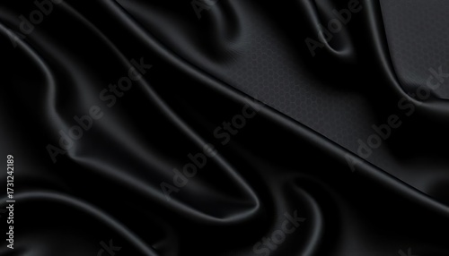 © DITSARAPHAN, Obraz premium Deep, rich black silk fabric with subtle sheen and texture, macro, fashion