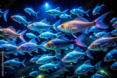 Fototapeta premium Deep Sea Fish Long Exposure Photography: Bioluminescent Creatures, Underwater...