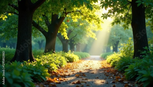 Naklejka premium Deep shadows, sunlight filtering through leaves, botanical, dark