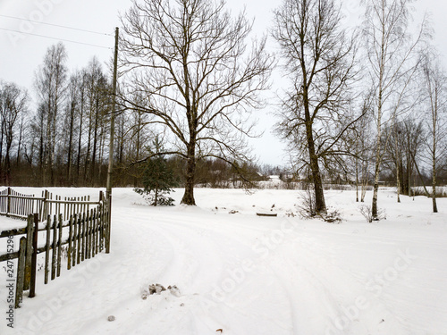 © Martins Vanags, Naklejka premium deep snow covered road in winter