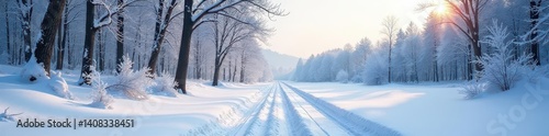 © intothestar, Obraz premium Deep snow drifts, bare trees Silent, pristine winter scene , background, peaceful