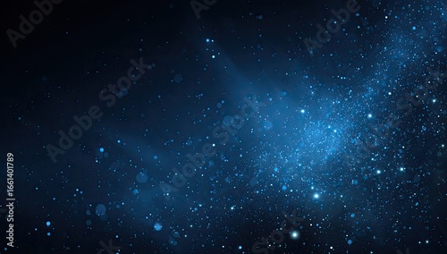 Fototapeta premium Deep space, a dark blue background strewn with luminous, glittering particles, creating a cosmic, starry effect