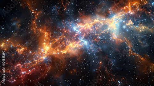 Naklejka premium Deep space backdrop with tiny glowing molecular networks Small, interconnected structures forming a constellation-like pattern against the cosmos.