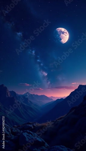 Obraz premium Deep space background with starry night and glowing moon, starscape, cosmos, tranquil