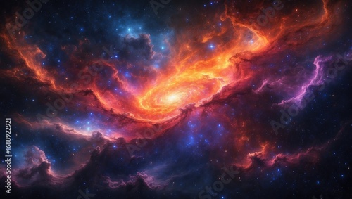 © Lasvu, Fototapeta premium Deep space cloud formation with vibrant colors and starry background. Astronomy and universe exploration, cosmos, and celestial phenomena.