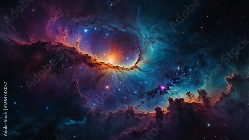 Obraz premium Deep space nebula, cosmic galaxy, interstellar cloud, vibrant celestial...