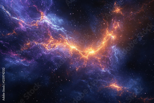 Fototapeta premium Deep space nebula with glowing blue and orange interstellar clouds