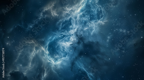 © Mutshino_Artwork, Obraz premium Deep space nebula with glowing blue clouds and starry sky