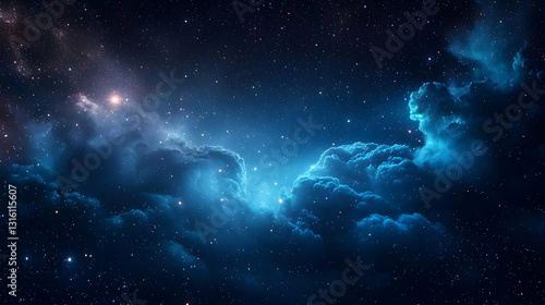 Fototapeta premium Deep Space Nebula With Glowing Blue Clouds Interstellar Dust And Bright Stars In The Dark Night Sky Cosmic Background For Space Exploration