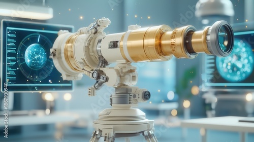 Obraz premium Deep space quantum telescope array unveils habitable exoplanets a...