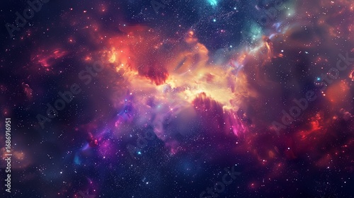 Fototapeta premium Deep space starfield, colorful nebula clouds, glowing stars, high-resolution astronomy background.
