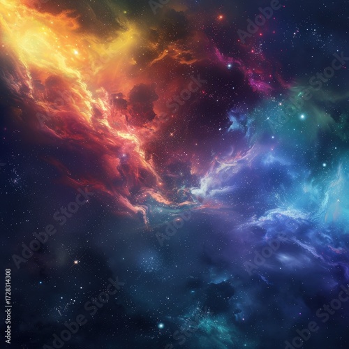© Nytheris , Fototapeta premium Deep Space Top View Colorful Galactic Dust Star Clusters Bright Light Gradients Cosmic Hues