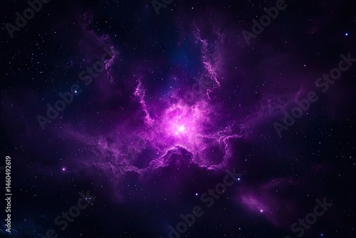 Fototapeta premium Deep space view with purple nebula. Dazzling cosmic clouds