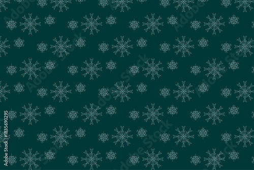 Fototapeta premium Deep Teal Christmas Snowflake Seamless Vector Pattern for Gift Wrap, Fabric and Wallpaper