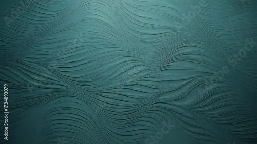 Obraz premium Deep Teal Textured Surface with Flowing Wavy Lines and Subtle Shadows background