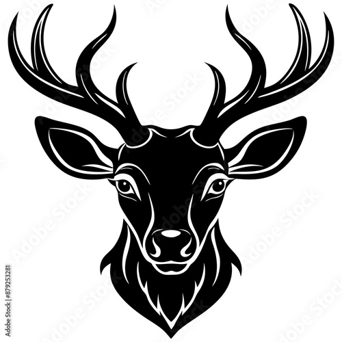 © Vector Art, Naklejka premium deer, animal, vector, reindeer, illustration, cartoon, mammal, head, wild, antler, silhouette, christmas,