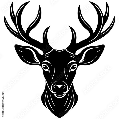 © Vector Art, Naklejka premium deer, animal, vector, reindeer, illustration, cartoon, mammal, head, wild, antler, silhouette, christmas,