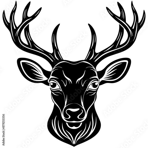 © Vector Art, Naklejka premium deer, animal, vector, reindeer, illustration, cartoon, mammal, head, wild, antler, silhouette, christmas,
