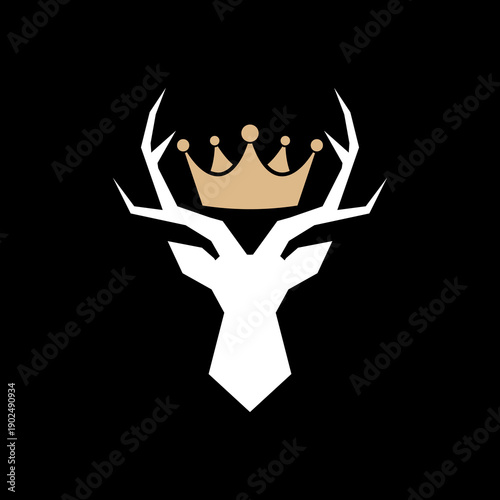 © sljubisa, Obraz premium Deer antler head crown icon isolated on black background