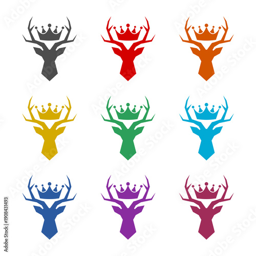 © sljubisa, Naklejka premium Deer antler head crown icon isolated on white background. Set icons colorful