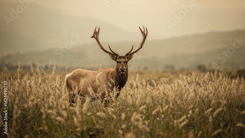 © The 2R Artificiality, Fototapeta premium Deer antlers peeking through dense grass