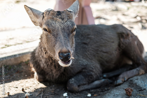 © Jo Panuwat D, Fototapeta premium Deer around Nara park and Todaiji temple. Asian traveler visit in Nara near Osaka. landmark and popular for tourists attractions Japan. Asia travel concept