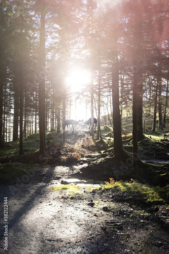 © Nektarstock, Obraz premium Deer Clashing Antlers in Forest