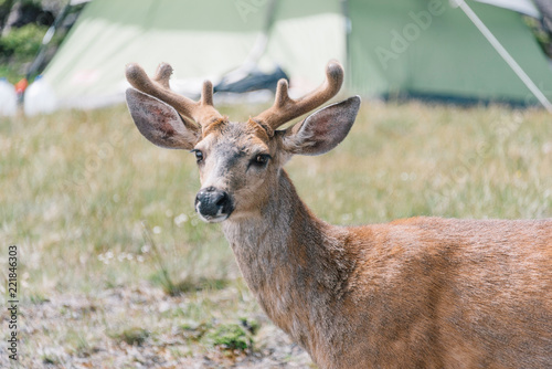 Fototapeta premium Deer Close-up Near Campsite