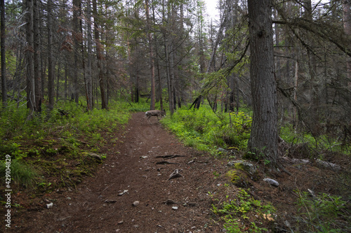 Fototapeta premium Deer crossing a hiking trail in the forest