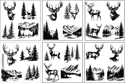 © Md Mithu Mia, Fototapeta premium Deer Elk Bull Wapiti Large Antlers Wildlife