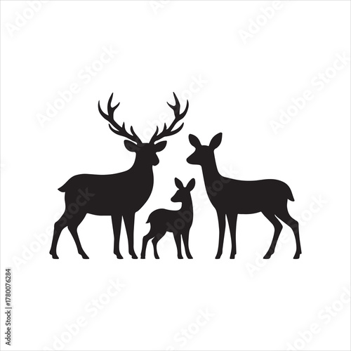 Obraz premium Deer Family Silhouette Vector Illustration Featuring a Buck Doe and Fawn...