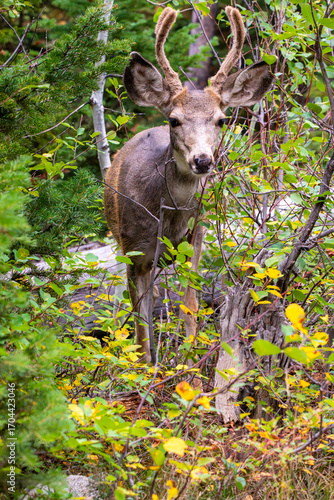 © Brax, Fototapeta premium Deer Grazing in a Forest in Grand Teton National Park