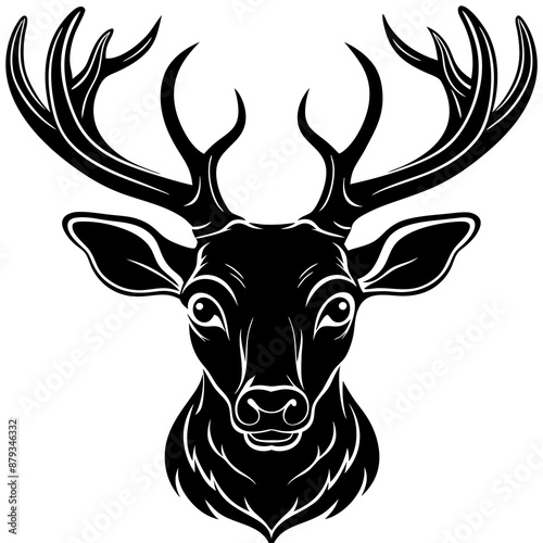 © SVGKING, Naklejka premium deer head silhouette, Deer head icon black vector silhouette, deer, animal, vector, reindeer, cartoon, illustration,