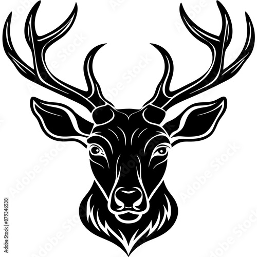 © SVGKING, Naklejka premium deer head silhouette, Deer head icon black vector silhouette, deer, animal, vector, reindeer, cartoon, illustration,