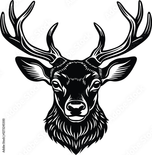 Naklejka premium Deer head silhouette vector illustration on a white background, perfect for...