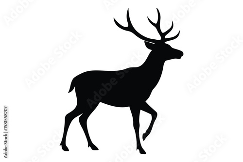 © Ataullah, Obraz premium Deer Head Silhouette with Floral Elements