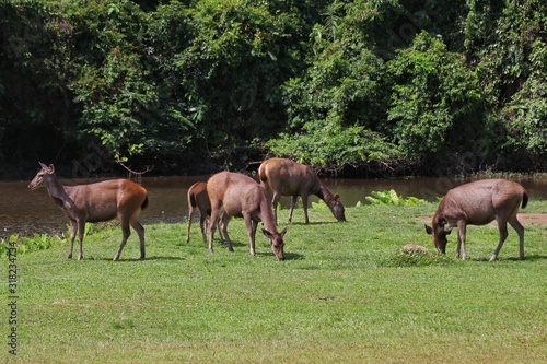 © Sakchai, Fototapeta premium Deer herd in Khao Yai national Park, Thailand