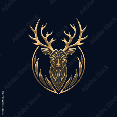 Obraz premium Deer in icon, logo style. Cartoon animal design. Flat vector illustration...